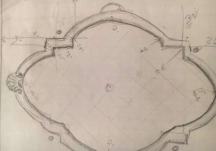 My clients ceiling was originally installed with a common raw pine wood. I first took measurements of the ceiling space to determine scale of the design. I then made a sketch on graph paper for a few preliminary visuals of how this design would look. I made a few 2 foot by 2 foot sample boards to get a visual to hold up to the ceiling for color and design. Painting a ceiling is always a beautiful endeavor, but getting there presents a more arduous effort. Gravity is not something I have to think about when painting a floor, but on a ceiling one almost needs four hands.