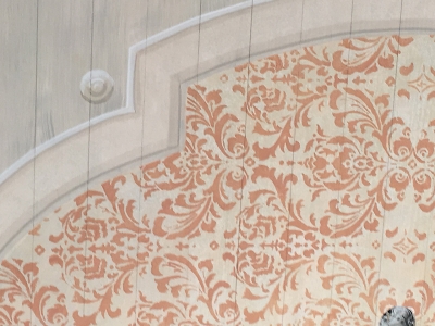 Two summers ago a building contractor friend asked me if I could paint a dining room ceiling for him in his new home near Folly Beach. After discussing a preferred color scheme, we decided that a Damask stencil design would be most appropriate. The Damask pattern has often been thought of originating form Damascus, Spain however its true origin is from China during the Byzantine empire and made its way to Europe in the 14th century. A silk or twill fabric weave has now been sometimes replaced with a modern day replica that decorative painters use with paint. I often apply several layers of thin translucent paint glazes to the wall before i even get to the Damask stencil.